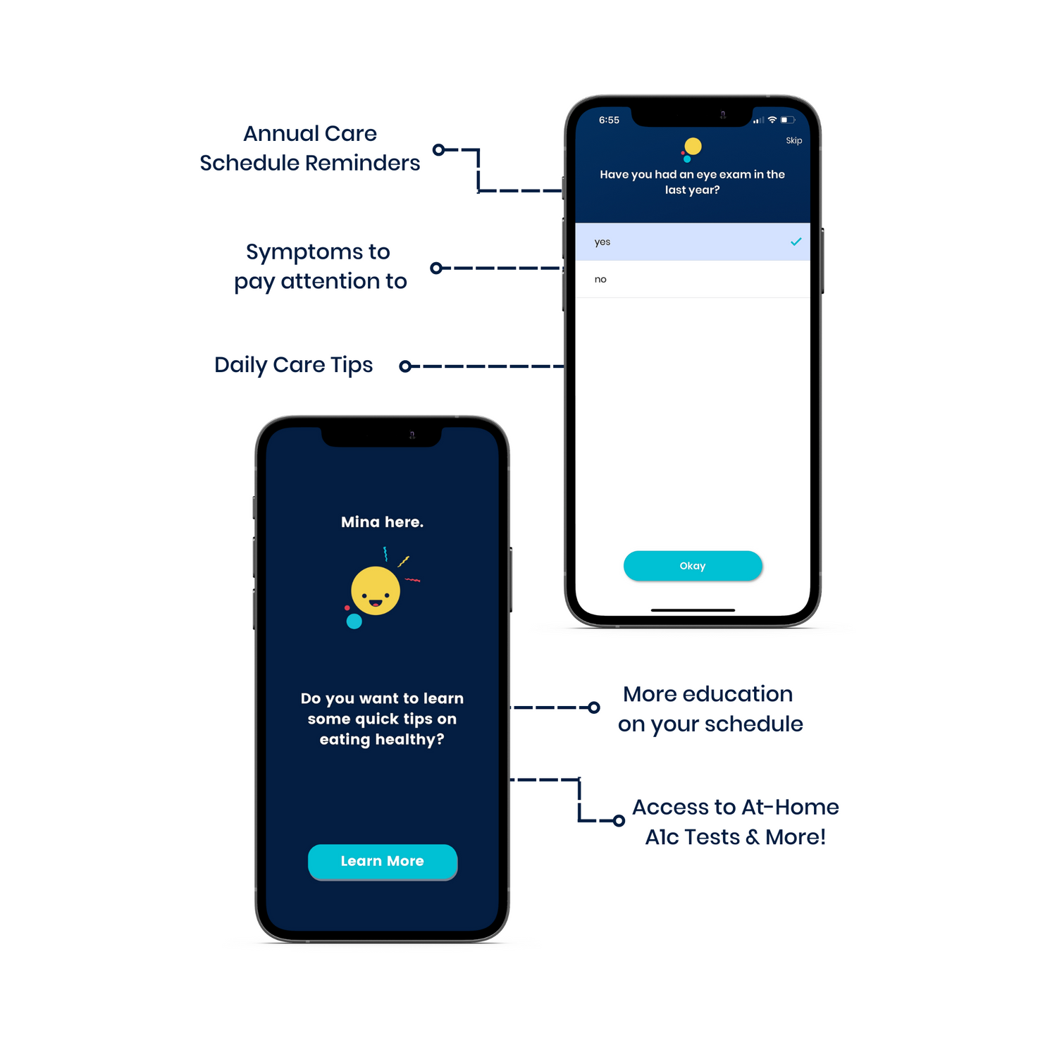 With Mina's support, you can proactively manage your diabetes, staying informed about your progress and having a clear understanding of your estimated A1c level. This ensures that you are never caught off guard during doctor's visits, empowering you to take control of your health with confidence and make informed decisions for optimal diabetes management.